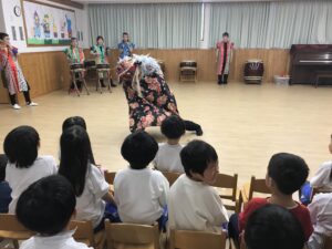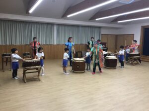 力いっぱいに太鼓をたたき、腕や体に伝わる振動を感じ驚く様子もありましたが、「楽しかったー!」とみんな笑顔でした。