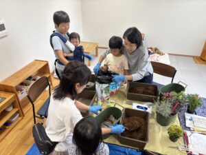 子育て支援の一環として、子育て中の方を対象に月1回園芸療法士の先生に来ていただき、