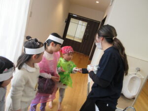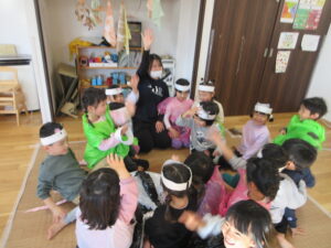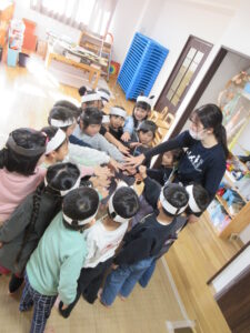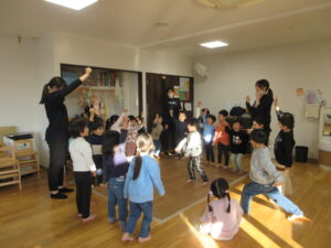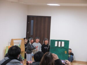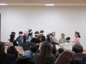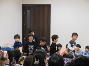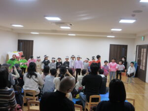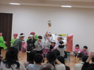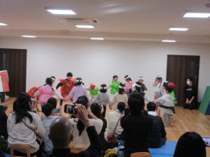 初めての発表会でしたが、沢山のお客さんに恥ずかしがることなく、大きな声でわらべうたを唄ったり、台詞を言ったりと堂々とした姿が見られました。