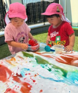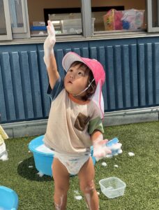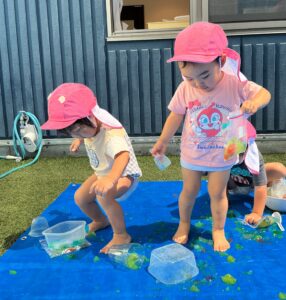 まだまだ暑い日は続くので、夏ならではのあそびを通して冷たさや気持ち良さを味わえたらと思います。