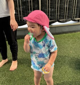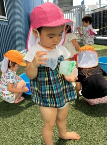 「おみず いこっかー!」と子ども同士で話していたりと毎日楽しみにしています。