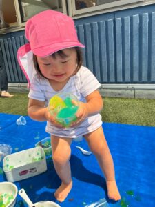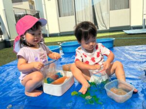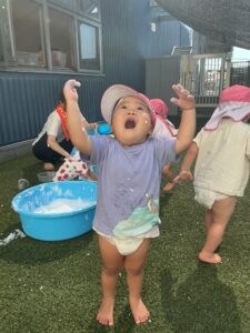 まだまだ暑い日は続くので、夏ならではのあそびを通して冷たさや気持ち良さを味わえたらと思います。